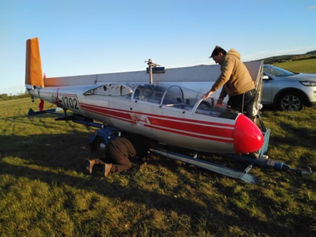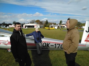 O víkendu jsme jednoho Blaníka rozebrali a složili na transportní přívěs, počátkem týdne zahájili komunikaci s Aeroklubem Podhořany a ve čtvrtek ráno vyrazili do akce. Jedna parta vyjela z Havlíčkova Brodu a na přívěsu přivezla Blaníka, druhá skupina dorazila přímo z Prahy. Celkem jsme byli 4 piloti, kteří dosud na svahu nelétali a jeden instruktor. V 10 hodin jsme se sešli na letišti v Podhořanech. Vítr již byl silný, ale foukal z jižních směrů. Složili jsme kluzák a čekali, až se vítr v souladu s předpovědí stočí na jihozápad. O půl jedné odstartovala první posádka.