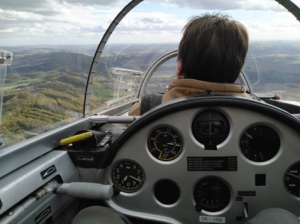 Svahový efekt byl tak silný, že bylo možno létat ve výškách od 100 do 1000 metrů nad zemí. Nad lomem jsme se otočili a hurá zpět k letišti. Po hodině létání jsme se let zakončili téměř kolmým přistáním (při přistávání proti silnému větru Blaník ve vzduchu téměř stál) zpět na letišti v Podhořanech. Piloti na přední sedačce Blaníka se vyměnili, předjela vlečná a už jsme zase letěli. Tento postup se opakoval celkem 4x.